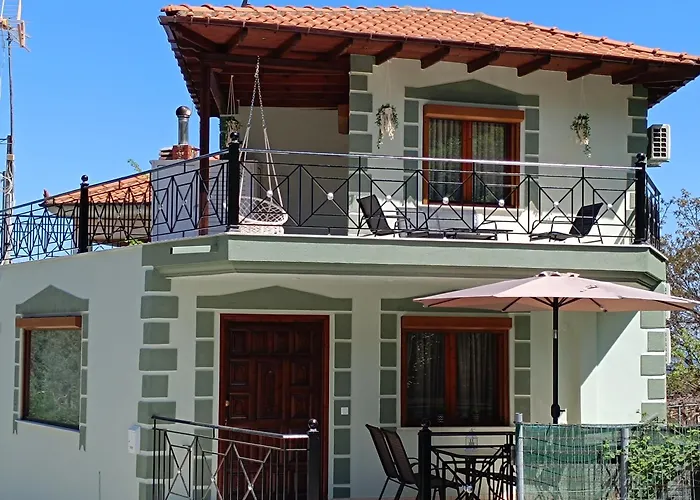 Tarsanasから徒歩でたった5分の場所に位置するベッドルーム1室のPotamia Tsimas Houseヴィラは、街路の景色を堪能できるホテルです。 ヴィラに無料の専用駐車場と山の景色を望むテラスがあります。